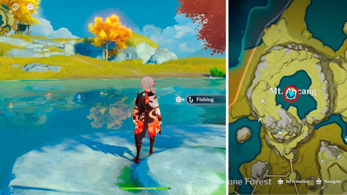 Genshin Impact Fishing Spot locations, including which fish can be caught and when they spawn